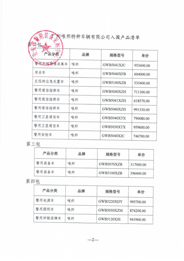 強烈熱鬧慶祝廣州唯邦特種車輛無限公司入圍公安部012警采中間警用特種車輛和談供貨商名錄